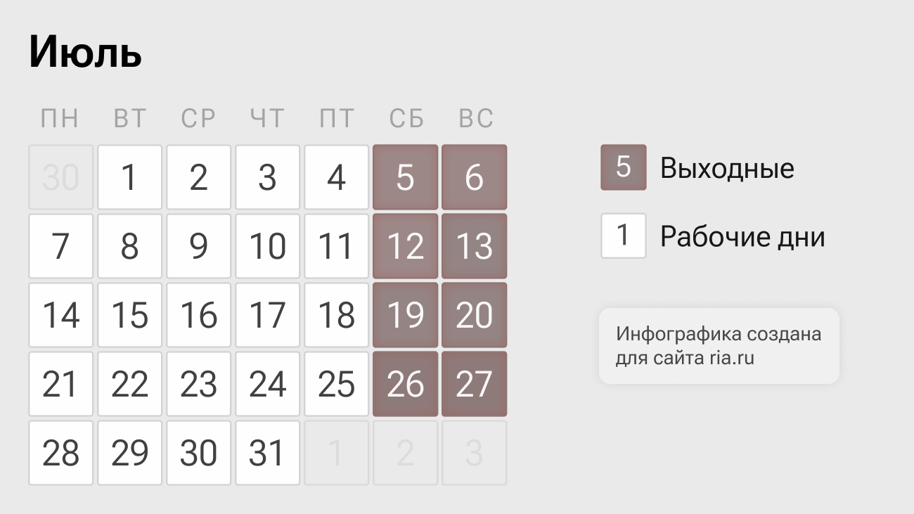 Как отдыхаем в июле 2025 года, сколько в месяце официальных выходных и рабочих дней, будет ли в России перенос выходных в связи с государственными праздниками, выгодно ли брать отпуск в этом месяце для длительного отдыха — в материале РИА Новости.Как отдыхаем в июле