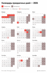 Россияне будут отдыхать 21-23 февраля и 7-9 марта в 2026 году