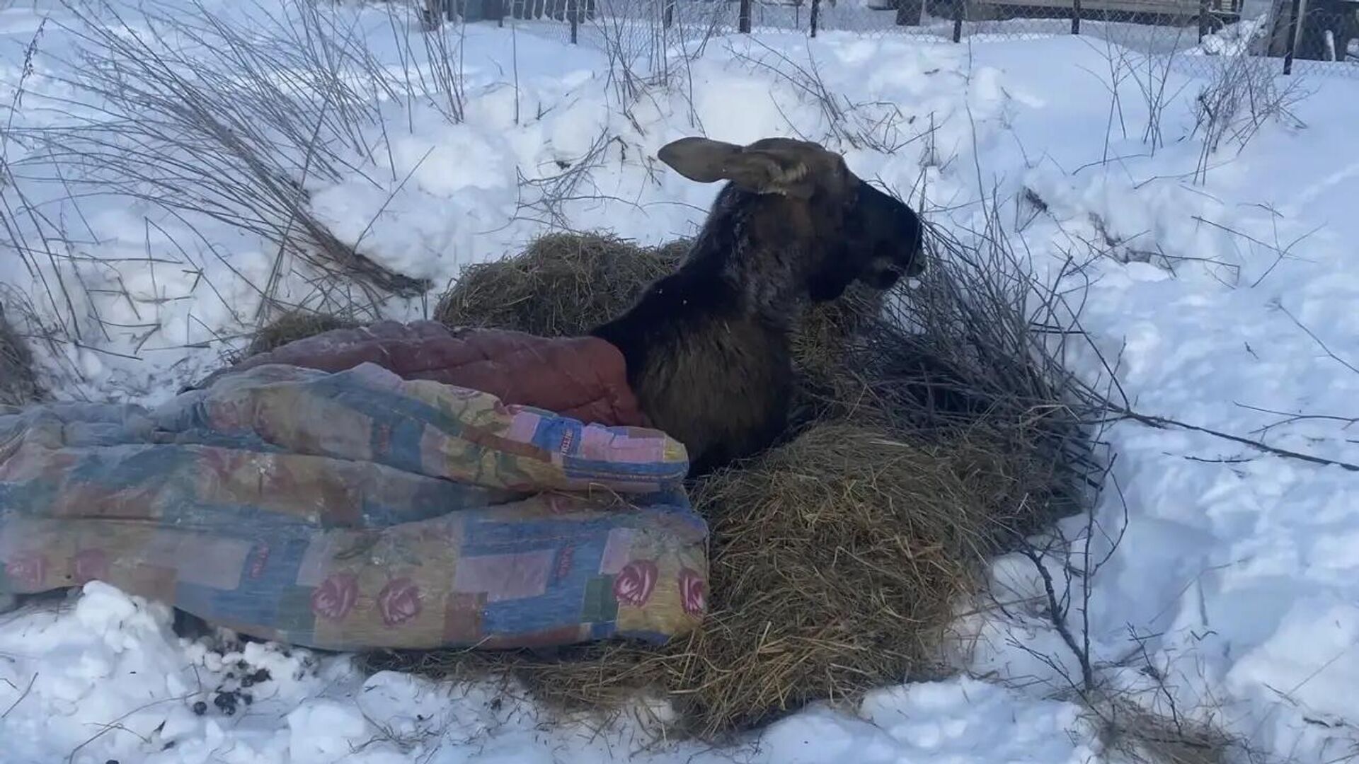 Жители поселка Октябрь Некоузского района рассказали в соцсетях, что 23 января спасли провалившегося в пруд лося. Теперь животное лежит в снегу, потому что не может передвигаться. Жители приносят лосю еду, укрывают одеялами, чтобы он не замерз. В ночь на вторник в регионе была сильная метель, и люди волнуются за судьбу лося. В региональном минприроды сообщили РИА Новости, что на место планируют выехать ветеринар и охотинспектор и рассказали о планах вывезти животное в лес.